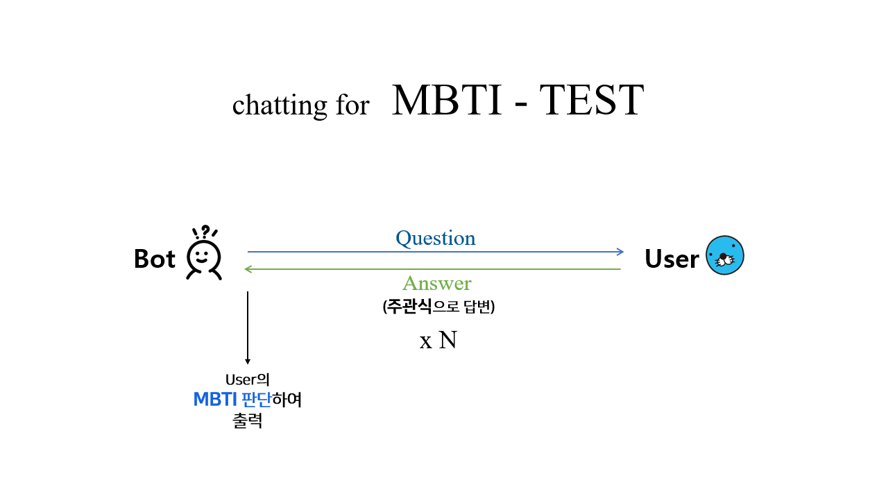 3. `Bot`은 질문을 분석하여 사용자의 MBTI 중 하나의 유형을 예측한다.