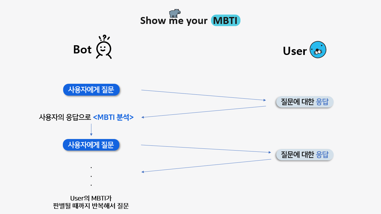 이렇게 계속해서 질문을 하다가 어느정도 `User`의 MBTI가 판단이 서면